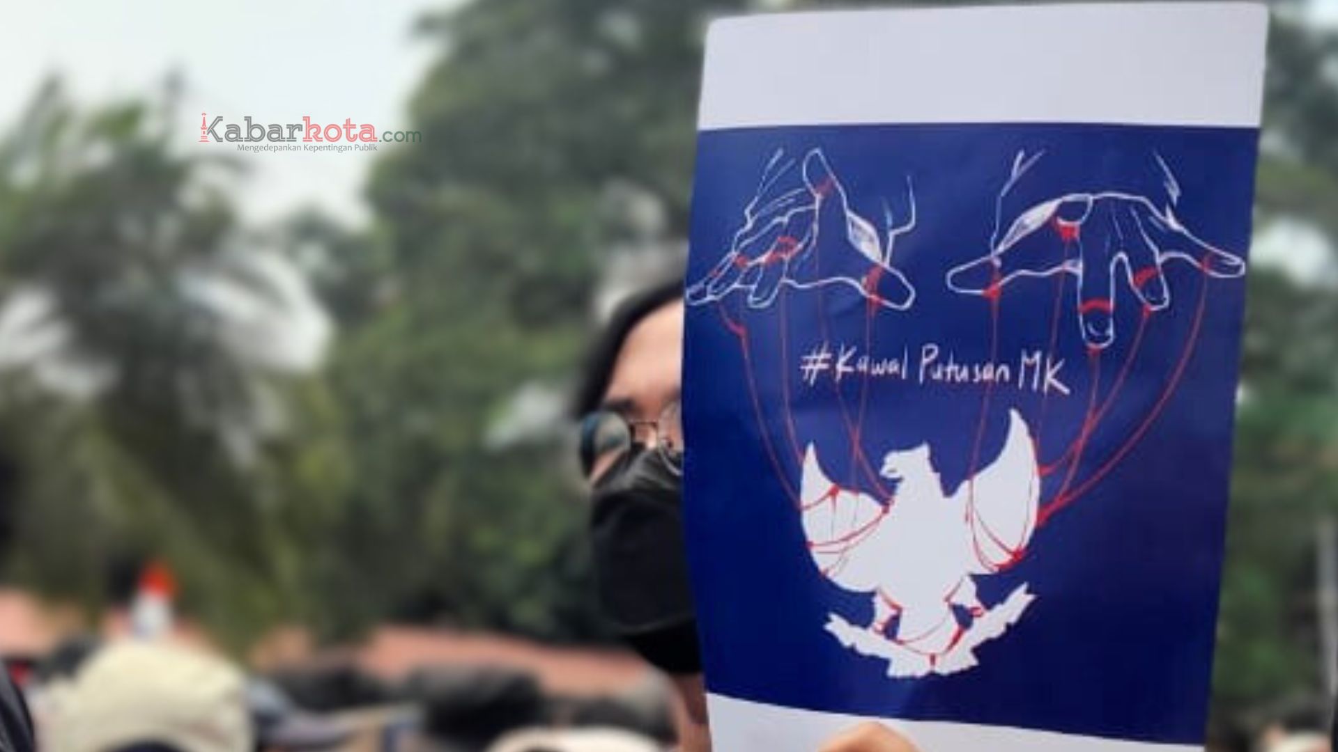 Ilustrasi: Poster #kawalputusanMK yang dibawa salah satu mahasiswa saat aksi #jogjamemanggil di kawasan Malioboro Yogyakarta, pada 22 Agustus 2024. (dok. kabarkota.com)