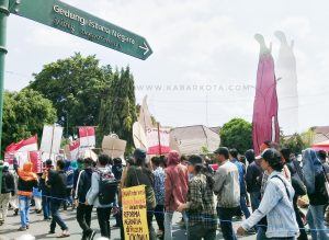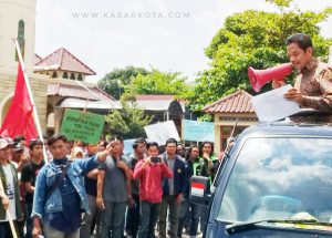 Aksi unjuk rasa Aliansi Gempa di halaman gedung DPRD DIY, Senin (24/9/2018). (sutriyati/kabarkota.com)