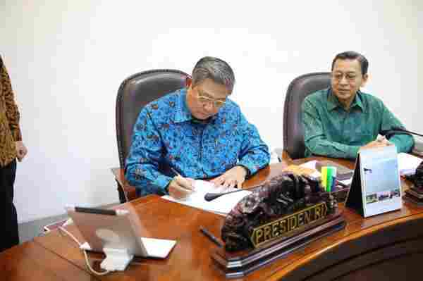 Presiden SBY menandatangani Perppu Pilkada langsung dengan perbaikan. (sumber: akun twitter @SBYudhoyono)