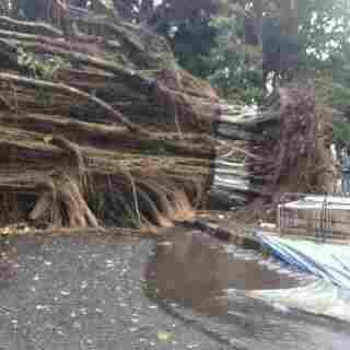 Pohon beringin yang tumbang di sekitar alun-alun Denggung, Sleman, Senin (15/2/2016) sore. (dok. istimewa)