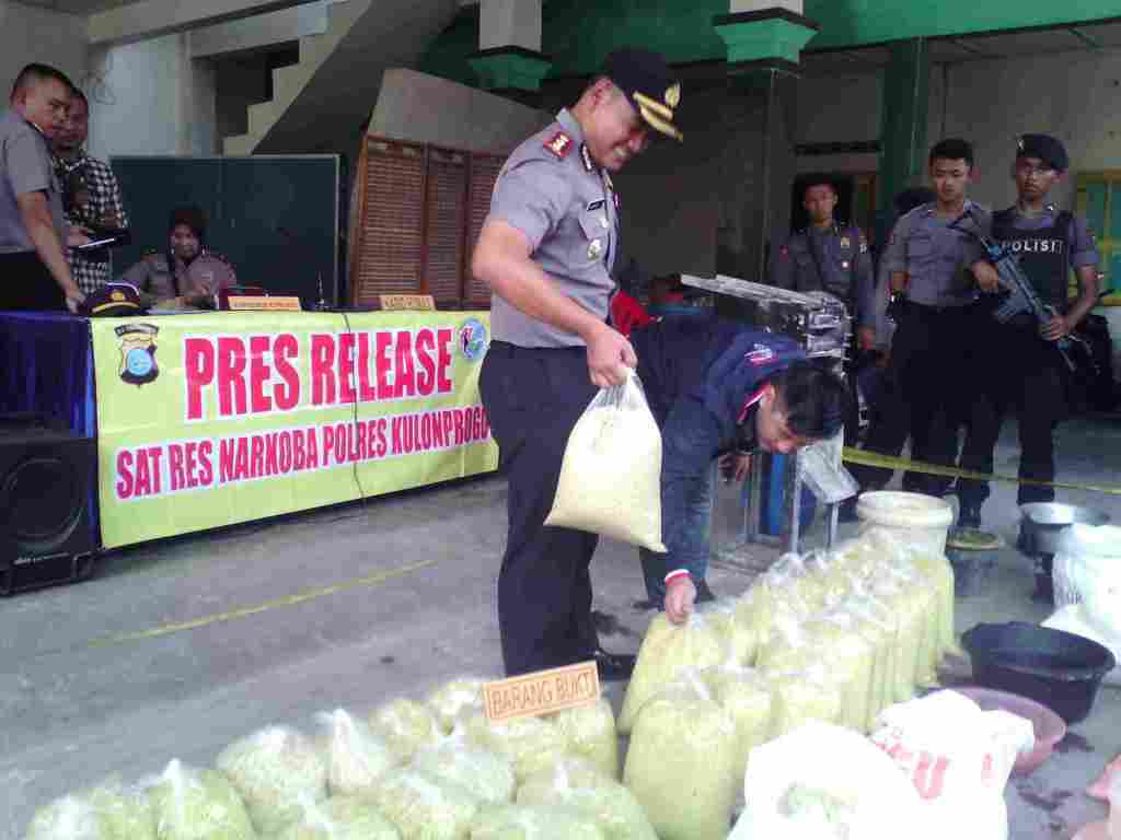 Kapolres Kulon Progo, Nanang Djunaedi menunjukkan mie mengandung boraks di tempat produksi, Rabu (10/8/2016). (sutriyati/kabarkota.com)