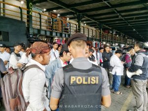Situasi saat massa aksi KAMMI DIY bernegosiasi dengan aparat kepolisian di Taman Parkir Abu Bakar Ali Yogyakarta, Jumat (14/9/2018) siang. (sutriyati/kabarkota.com)