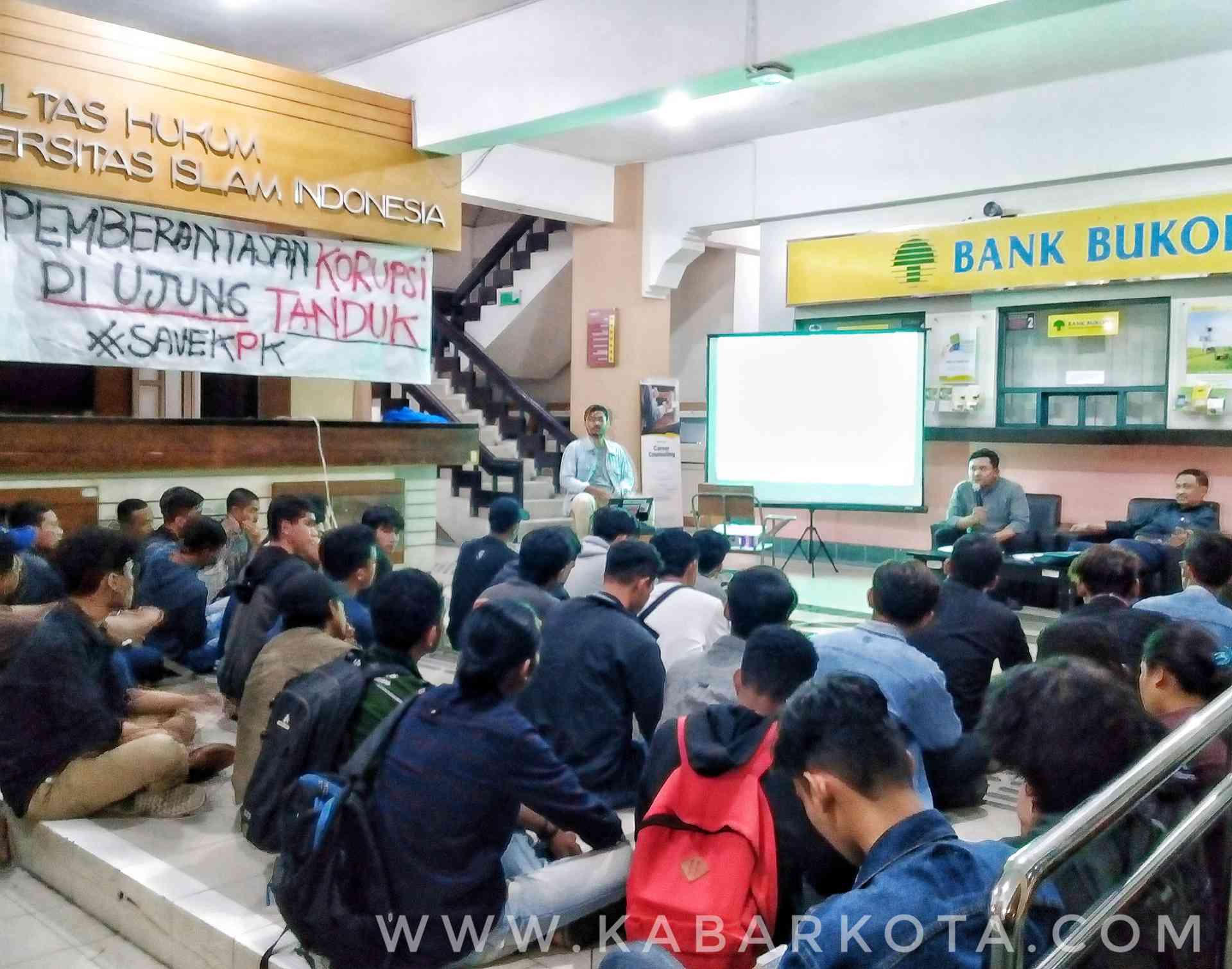 Kajian betajuk “Revisi UU KPK : Permufakatan Jahat terhadap pemberantasan korupsi di Indonesia?” di hall FH UII Yogyakarta, Selasa (10/9/2019). (dok. kabarkota.com)
