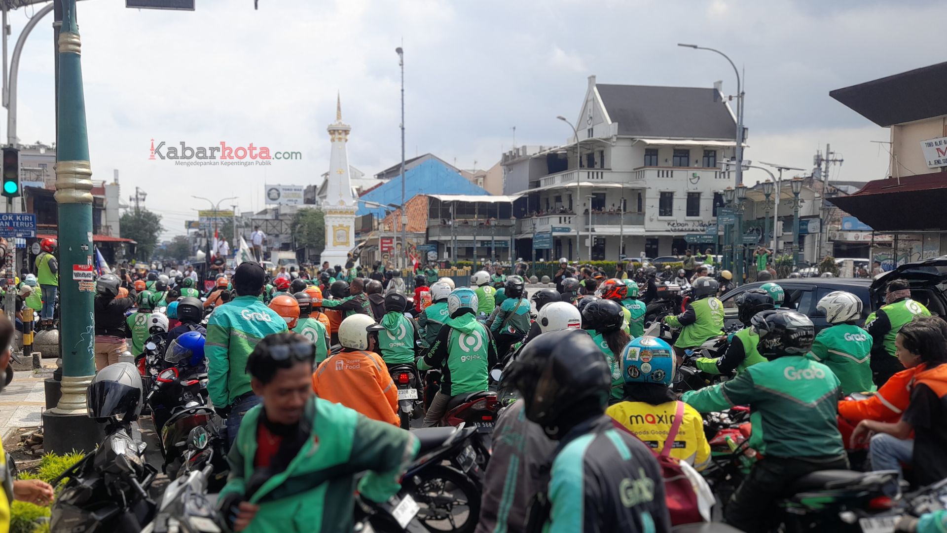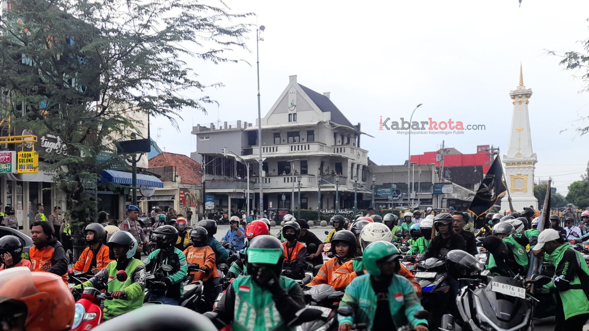 Ratusan driver ojol bergerak menuju Tugu Yogyakarta, pada Selasa (20/5/2025). (dok. kabarkota.com)