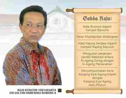 YOGYAKARTA (kabarkota.com) – Keluarnya sabda raja pada 30 April 2015 lalu, yang salah satu poinnya mengubah gelar raja keraton Yogyakarta dengan menghilangkan ‘khalifatullah’ hingga kini mengundang keprihatinan sekaligus penolakan dari berbagai pihak, termasuk para rayi dalem (adik Sultan), serta sejumlah tokoh masyarakat di Yogyakarta.