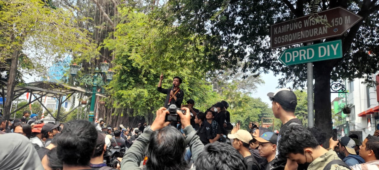 “Kawan-kawan mahasiswa, ingat kita para calon pemimpin negeri ini, maka jangan sampai kita seperti mereka yang ada di gedung parlemen itu,” tegas salah satu orator mahasiswa di depan kantor DPRD DIY.