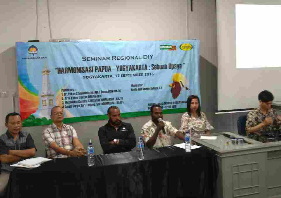 “Kami selama ini mengharapkan agar dihargai untuk menjadi manusia yang sama,” ungkapnya dalam seminar “Harmonisasi Papua – Yogyakarta : Sebuah Upaya” (17/9/2016) di Pasca Sarjana di Universitas Atma Jaya Yogyakarta (UAJY).