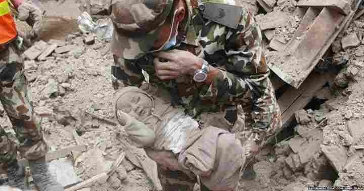 Bayi empat bulan korban gempa Nepal ditemukan dalam kondisi selamat oleh tim evakuasi, setelah sepekan terkubur di reruntuhan bangunan. (sumber: fb bbc indonesia)