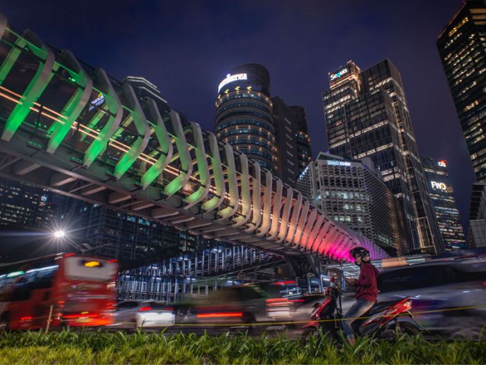 Tunjukkan dukungan ke korban penembakan, Pemprov DKI munculkan warna-warna bendera Selandia Baru di JPO GBK. (Foto: Dok. Pemprov DKI)