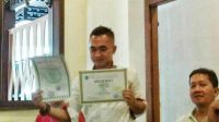 Harjito, salah seorang PKL Malioboro menunjukkan sertifikat halal untuk warung …
