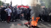 Aksi bakar road barrier di sela-sela demonstrasi #jogjamemanggil di depan …