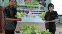 Ferry Kurniawan (kiri) menunjukkan hasil produksi sayurannya dengan sistem hidroponik, …