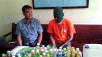 Penjual miras oplosan berinisial P bersama barang bukti yang diamankan …