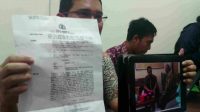 Kuasa hukum keluarga Siyono, Trisno Raharjo menunjukkan bukti surat pemanggilan …