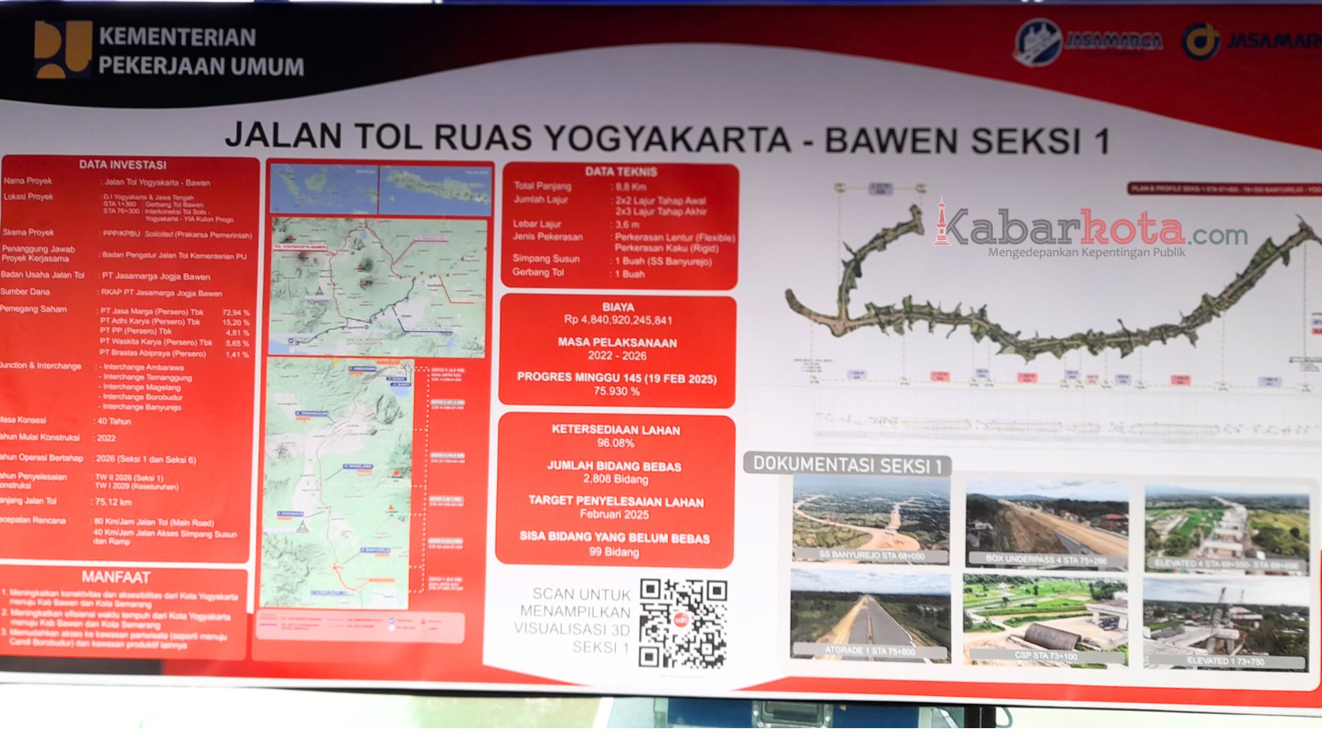 Selain itu, lanjut Khusairi, Tol Jogja – Bawen juga akan terkoneksi dengan tol Solo – Jogja – Kulon Progo sehingga aksesibilitas masyarakat dari Solo, Yogyakarta, dan Semarang bisa berjalan lancar, dengan jarak tempuh yang lebih singkat.