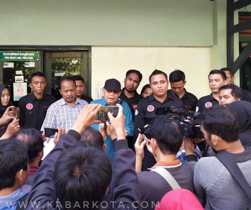 Ketua Koperasi Tri Dharma Malioboro, Mudjiyo (bertopi) saat memberikan keterangan pers usai menyerahkan surat permohonan audiensi dengan Walikota, di Kompleks Balaikota Yogyakarta, Senin (22/7/2019). (dok. kabarkota.com)