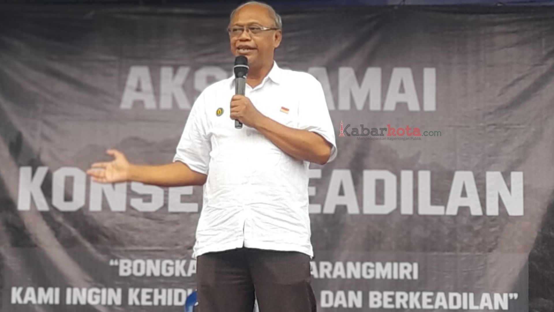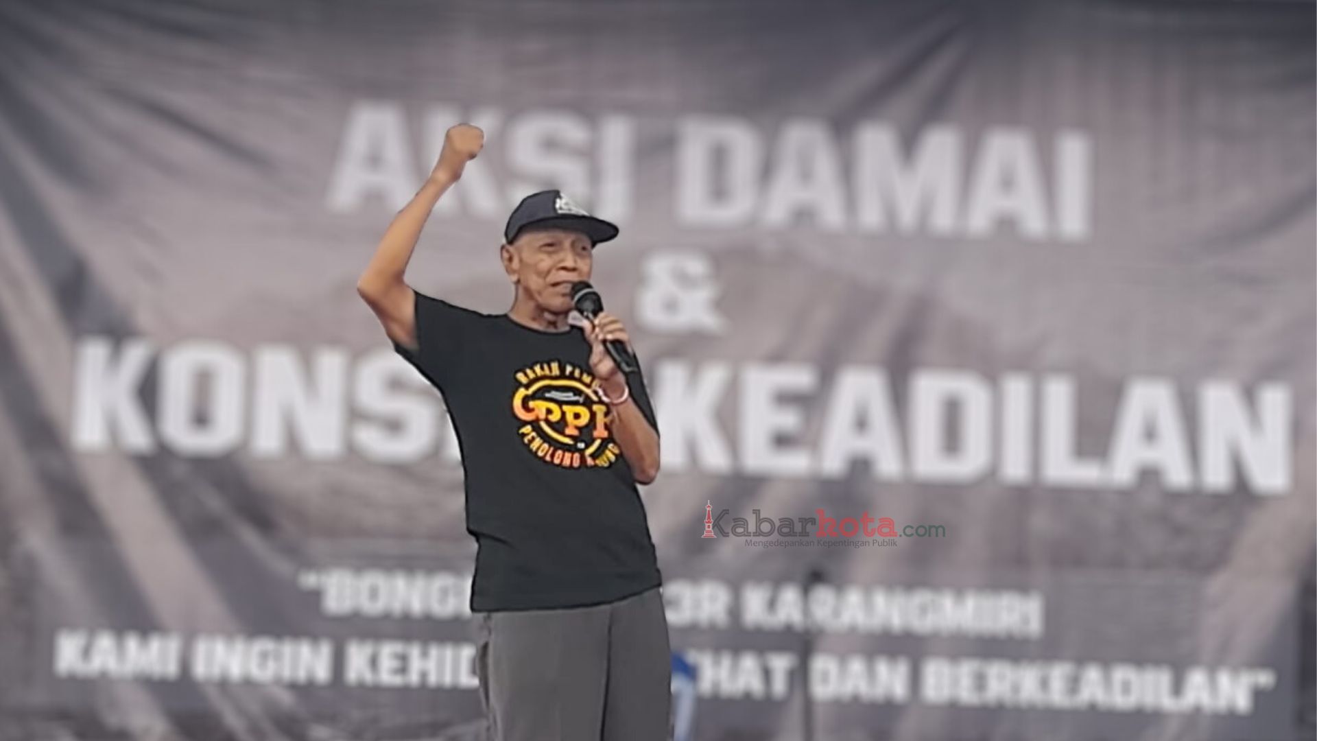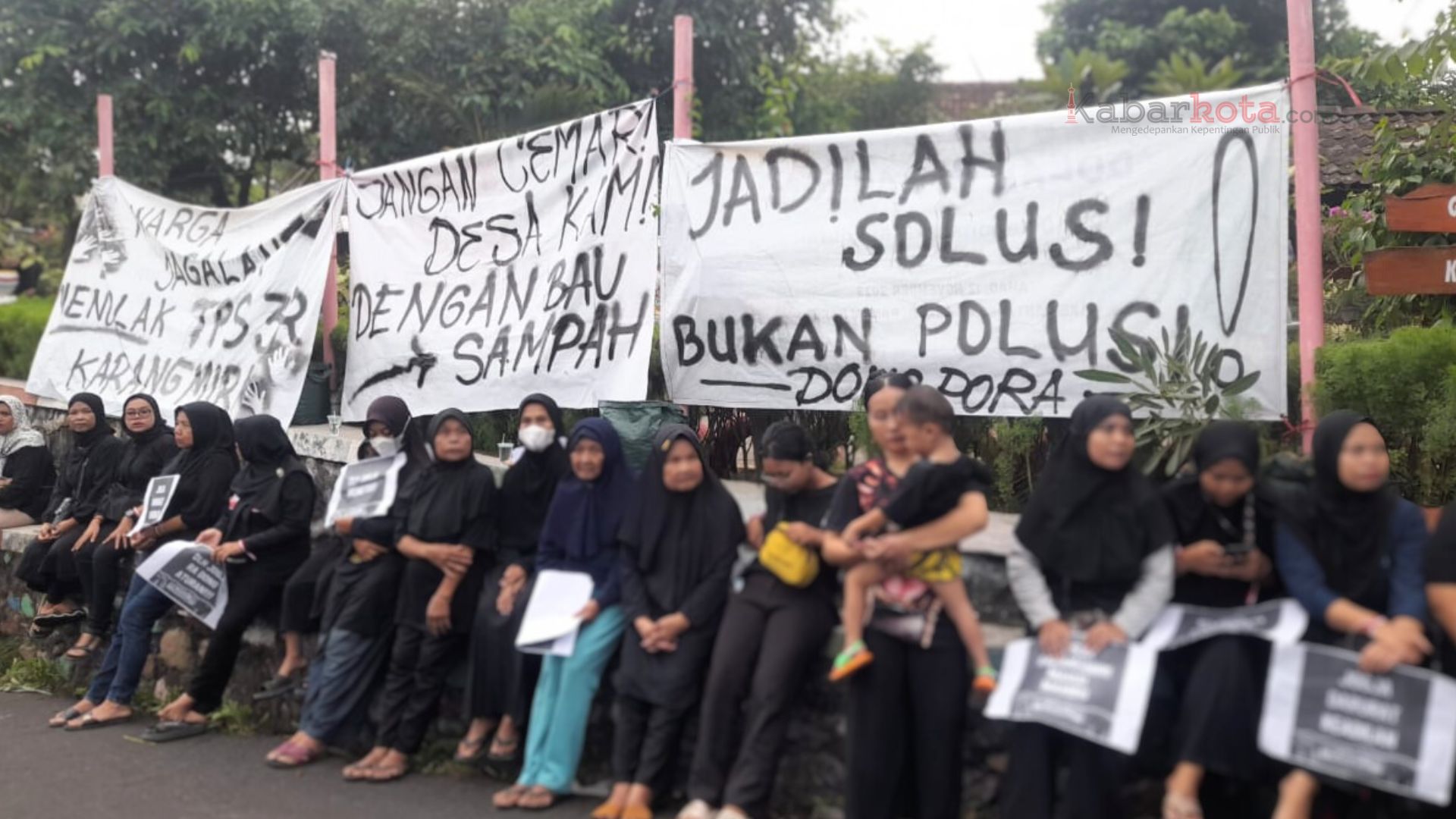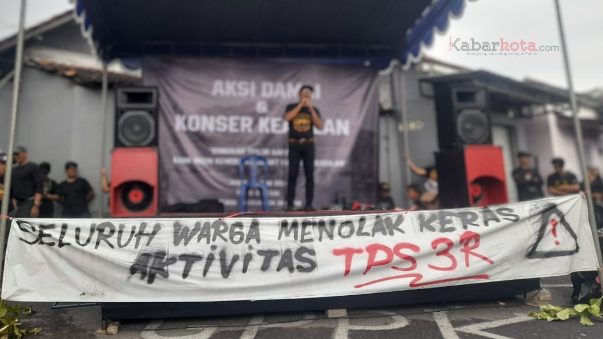 Mereka yang mayoritas berpakaian hitam, mulai dari anak-anak hingga Lanjut Usia (Lansia) berkerumun di sekitar panggung sederhana yang didirikan dalam rangka Aksi Damai dan Konser Keadilan bertajuk “Tutup TPS 3R Karangmiri, Kami ingin Kehidupan Sehat dan Berkeadilan”. Di bagian bawah panggung terbentang spanduk putih panjang bertuliskan: Seluruh Warga Menolak Keras Aktivitas TPS 3R.