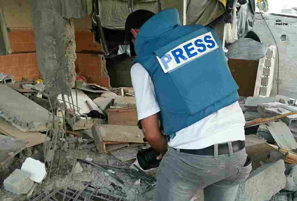 Ilustrasi: Seorang jurnalis mendokumentasikan kerusakan bangunan di Jalur Gaza, Palestina (dok. Ajb Abdullah)