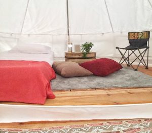 “Kami sadar bahwa industrial style memang sudah menjadi tren selama ini. Tapi kami ingin mengusung konsep glamping boho style. Dengan ornamen khas Boho dan warna-warna Nordic,” lanjutnya.